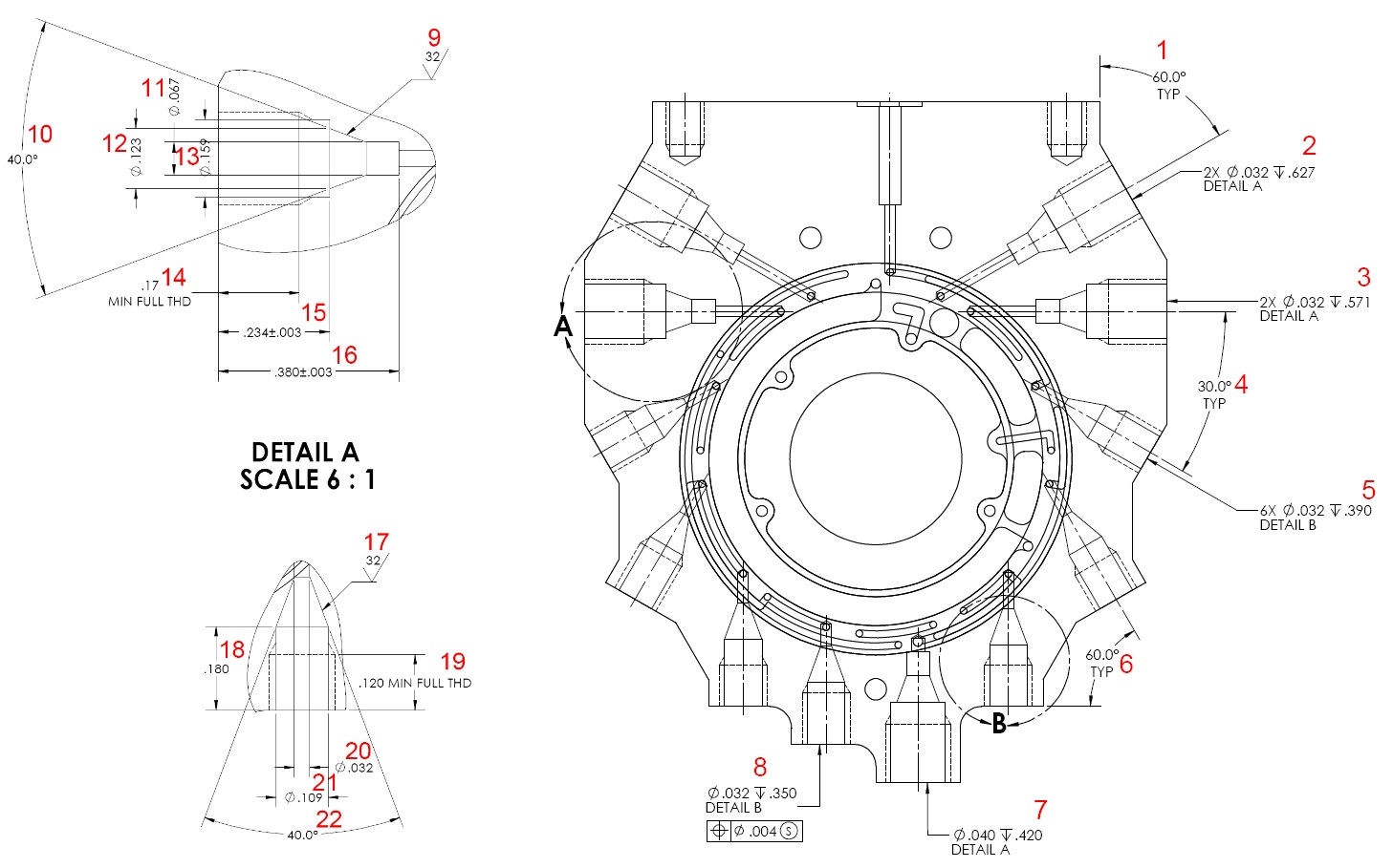 2.) Part Drawing with Marked Item Numbers