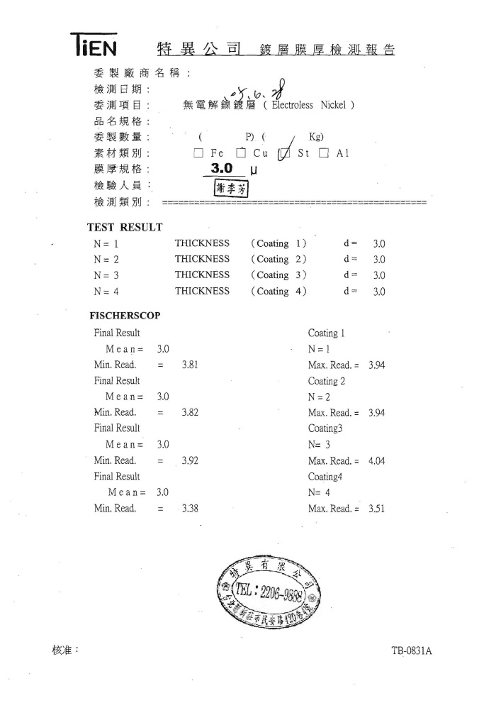 - Plating Report