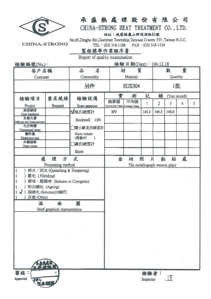 - Heat Treatment Report